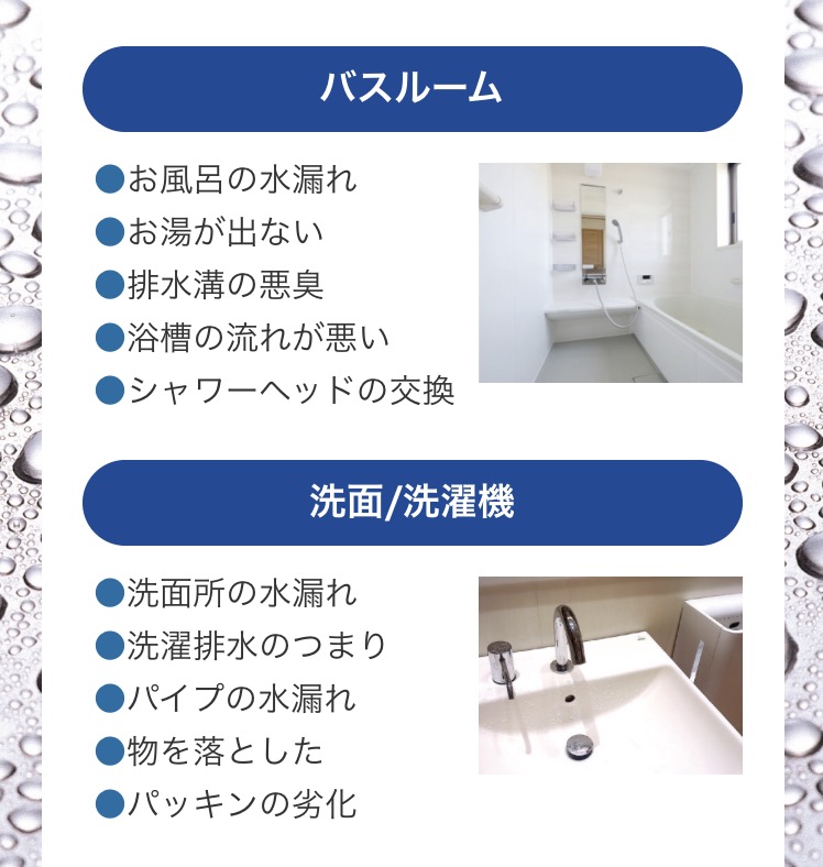 水廻りのトラブルが起きた際はお気軽にお問い合わせください。